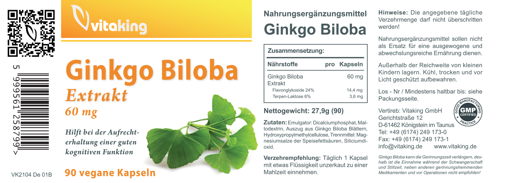 Inhalt: 90 Tabletten, jeweils mit 60 mg Ginkgo-Biloba-Extrakt